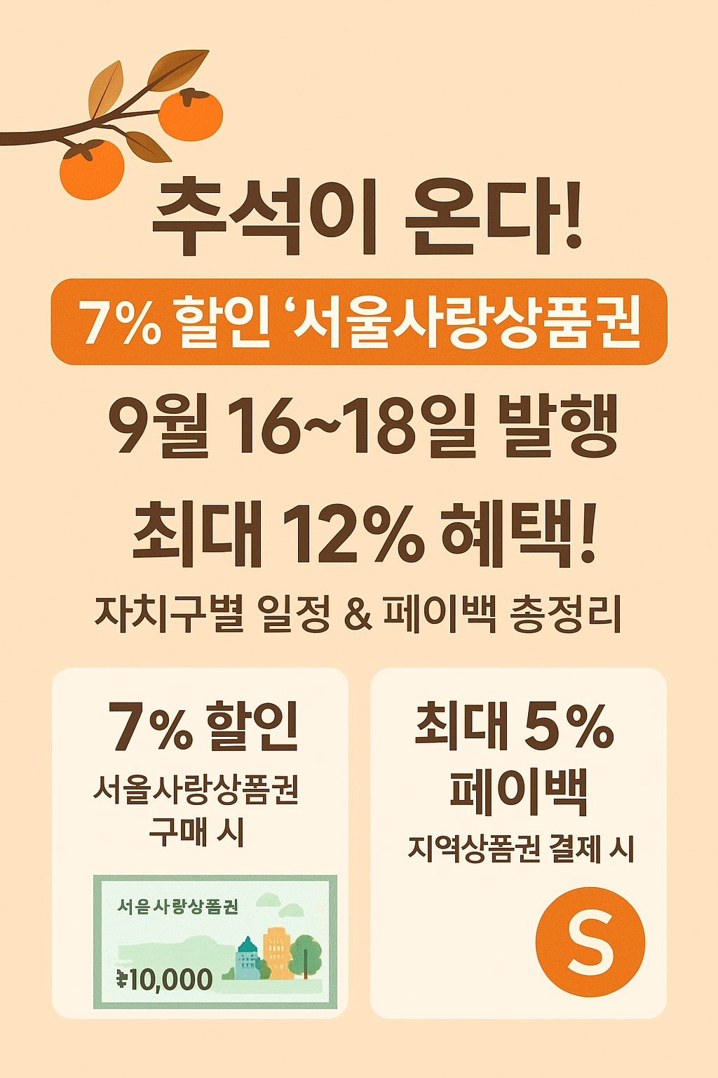서울사랑상품권 추석 맞이 7% 할인 발행 (9월 16~18일) | 자치구별 일정 & 페이백 총정리